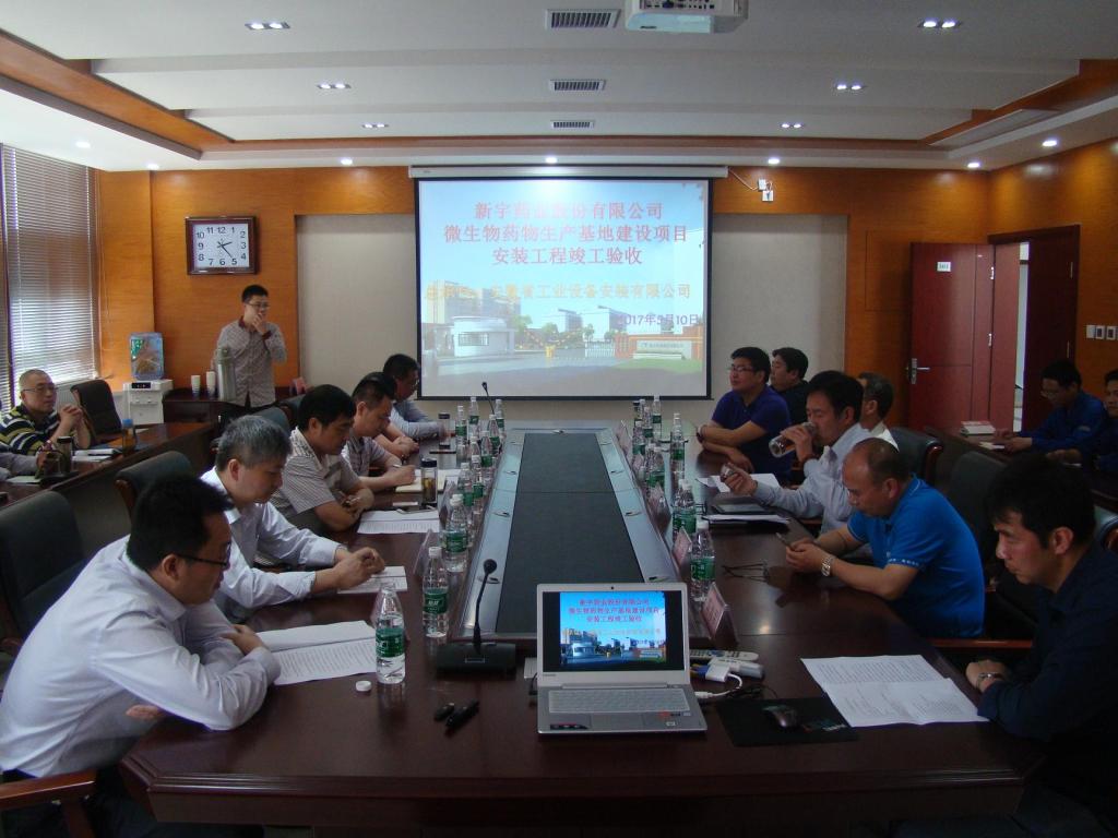 會(huì)上,項(xiàng)目經(jīng)理牛守義作工程驗(yàn)收匯報(bào),與會(huì)領(lǐng)導(dǎo)、專家對(duì)工程實(shí)體進(jìn)行了現(xiàn)場(chǎng)考察,對(duì)相關(guān)材料進(jìn)行了審核、討論。最終,雙方一致同意新宇藥業(yè)微生物藥物生產(chǎn)基地項(xiàng)目安裝工程通過竣工驗(yàn)收。