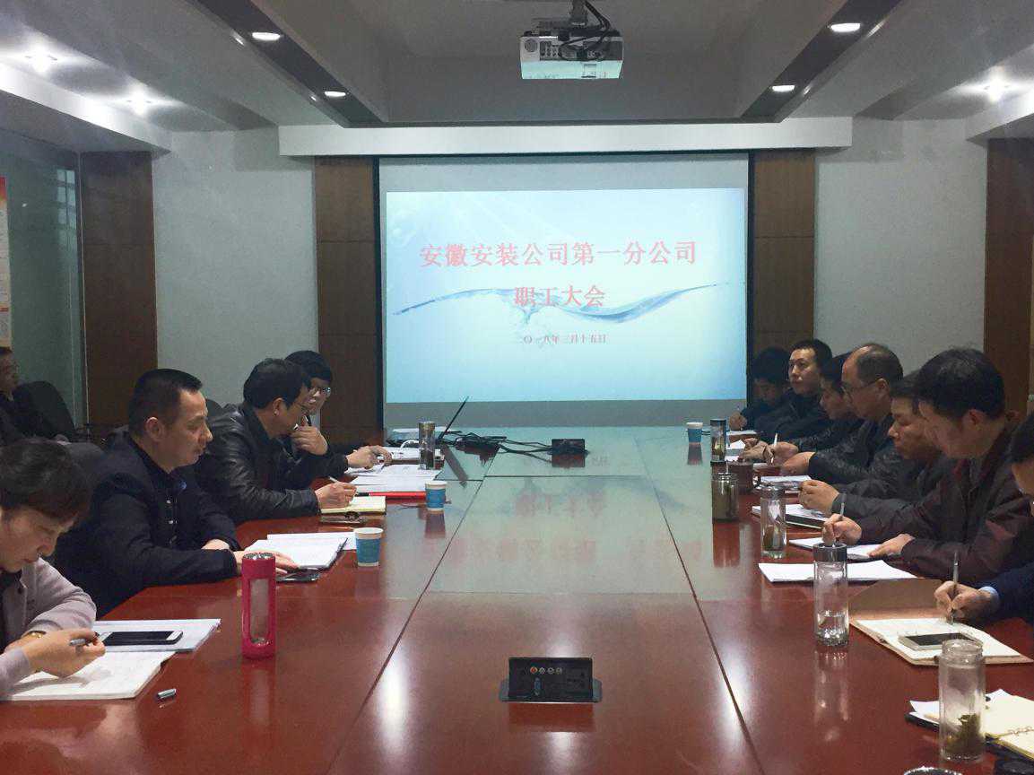 2018年3月15日,第一分公司在分公司機(jī)關(guān)召開2017年度職工大會。公司黨委書記、副總經(jīng)理胡六中,紀(jì)委書記、工會主席李寬旭,人力資源部經(jīng)理王敏等出席了會議,分公司機(jī)關(guān)全體人員及在肥項目部員工共36人參加了會議。會議由第一分公司黨支部書記胡迎東主持。
