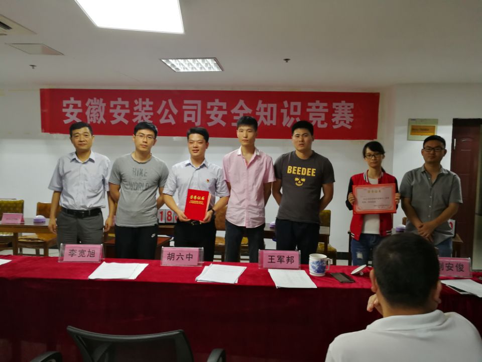 本次活動由各分公司、直屬項目部和機關各代表隊參加,現場氣氛熱烈、高潮迭起,知識競賽題型新穎、形式多樣、知識性與趣味性并重。在難度較大的風險題環(huán)節(jié),選手們紛紛表現出了高昂的斗志和團結協(xié)作的精神面貌。精心設置的搶答題環(huán)節(jié),使得現場的氣氛幾度達到高潮。最終,安慶代表隊奪得桂冠,機關一隊和機關三隊代表隊獲得“二等獎”,蚌埠分公司、機關二隊和四分公司代表隊獲得“三等獎”。賽后,公司領導為獲獎選手頒發(fā)證書、合影留念。