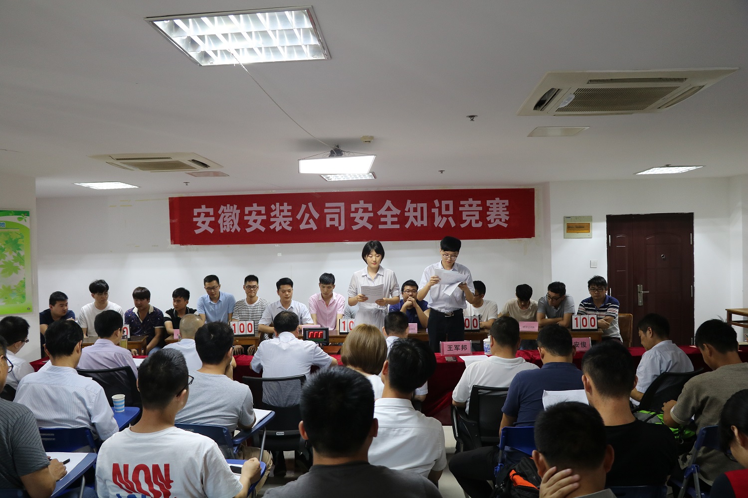 公司董事長、總經理王軍邦,黨委書記、副總經理胡六中,副總經理劉安俊,紀委書記、工會主席李寬旭出席了活動。各分公司黨政主要負責人、安全科長、項目專職安全管理人員及機關各部門觀看了比賽。賽前劉安俊發(fā)表講話:公司通過舉辦安全知識競賽,普及全員安全生產知識,提高全員安全意識,把安全理念貫徹到每一位職工和安全生產的各個環(huán)節(jié),要始終如一、持之以恒、深入持久地把安全工作抓緊、抓細、抓實、抓出成效。