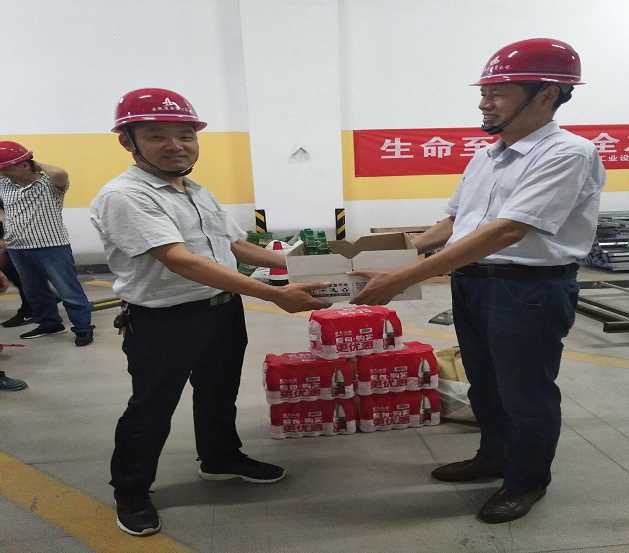 7月23日,第一分公司黨支部書記胡迎東、分管生產(chǎn)副經(jīng)理魯會、分管安全副經(jīng)理李多德、一分公司工會副主席鄭佳及相關部門負責人來到省行政中心提升改造項目部,為現(xiàn)場員工發(fā)放了茶葉、礦泉水、花露水等防暑降溫物品,把清涼送到了施工一線,把關懷送到員工心中!大家紛紛表示:雖然在屋頂露天施工酷熱難耐,但有分公司領導的關懷,一定能克服高溫環(huán)境帶來的困難,堅守崗位,苦干實干,保質保量地按時完成施工任務。