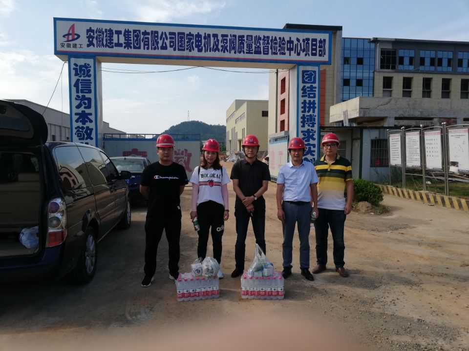 隨后,送清涼小組又趕赴位于涇縣的國(guó)家電機(jī)及泵閥質(zhì)量檢驗(yàn)檢測(cè)中心鋼結(jié)構(gòu)廠房安裝項(xiàng)目部,在項(xiàng)目負(fù)責(zé)人的引領(lǐng)下,深入施工現(xiàn)場(chǎng),與職工親切交談,詳細(xì)詢(xún)問(wèn)項(xiàng)目部員工的工作、生活情況,并叮囑大家一定要注意安全生產(chǎn)。趙經(jīng)理在現(xiàn)場(chǎng)還要求項(xiàng)目部要堅(jiān)持以人為本,關(guān)心、愛(ài)護(hù)職工,在做好現(xiàn)場(chǎng)防暑降溫工作的同時(shí),注重職工的飲食衛(wèi)生和夏季防病防疫等工作,加強(qiáng)防暑降溫和中暑急救知識(shí)的宣傳教育,確保安全施工。