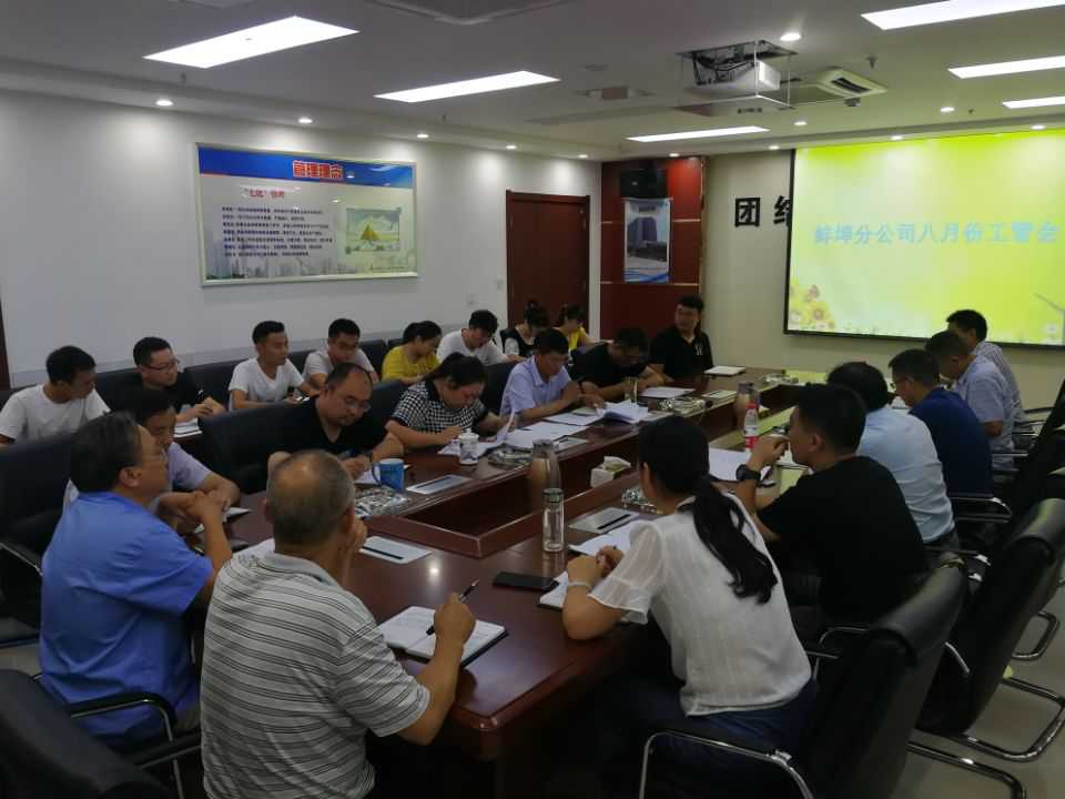 2019年7月31日下午,蚌埠分公司召開八月份份工程管理會議。公司副總經(jīng)理高飛攜工程管理部相關(guān)人員荏臨指導(dǎo)工作。分公司領(lǐng)導(dǎo)班子成員、分公司機(jī)關(guān)各部門負(fù)責(zé)人及各項(xiàng)目經(jīng)理參加了會議,會議由分公司副經(jīng)理張漢軍主持。