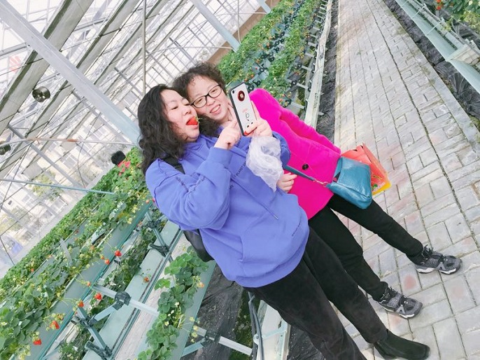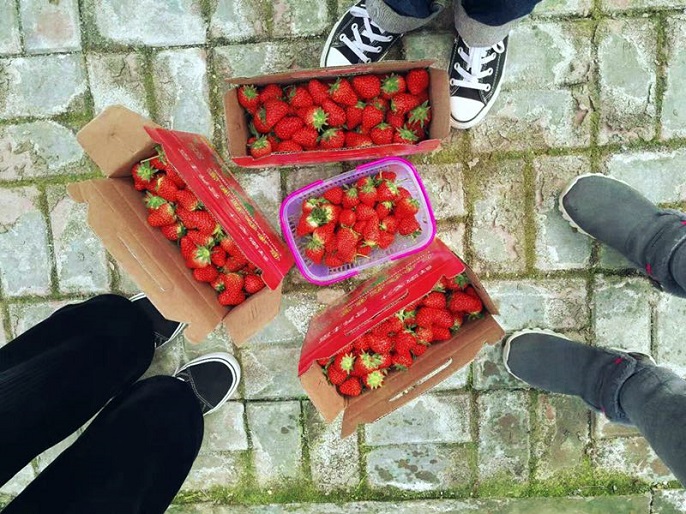 沐浴著清晨的第一縷陽光大家乘車出發(fā),一路上互相交流,歡聲笑語。 三月微風(fēng)暖,九州春意濃,草莓大棚里一片生機(jī)勃勃,翠綠的葉子、鮮紅的果實(shí)、芬芳的果香都讓人感到心情格外舒暢。她們小心翼翼地行走在草莓土壟之間,尋找自己的“戰(zhàn)地”,一邊品嘗,一邊采摘,感受著自己動(dòng)手的樂趣與收獲的喜悅。趁著美景,一起合影或是自拍,不時(shí)傳來歡快的笑聲。一個(gè)多小時(shí)后,每個(gè)人都有了豐碩的“戰(zhàn)果”,臉上都洋溢著燦爛的笑容,在這里留下了歡樂的記憶。