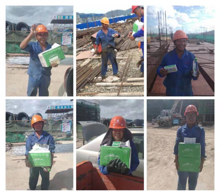 副總經(jīng)理王軍十分重視現(xiàn)場一線人員防暑降溫和工人的保障工作,多次電話詢問現(xiàn)場防暑降溫工作,項目部管理人員帶著公司領(lǐng)導(dǎo)對項目部工人們身體健康和安全生產(chǎn)的殷切期盼,把防暑降溫物品親自送到工人手里。一個個西瓜、一瓶瓶純凈水、一句句問候,表達了公司關(guān)心員工、體恤員工的一片情意,給炎炎夏日帶來一縷清涼。