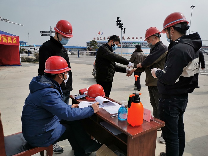 看得見的防疫配備,還有落在實(shí)處的防疫舉措。項(xiàng)目部開展員工返崗前14天健康在線管理,每位員工每日體溫、身體狀況、居住地、活動軌跡等信息,每天線上打卡、全員覆蓋。實(shí)行“生產(chǎn)網(wǎng)格化、吃住軍事化”,員工入“格”后,現(xiàn)場、宿舍、食堂“三點(diǎn)一線”管理,餐廳座位隔單排、菜飯統(tǒng)一打、就餐時間拉長,衛(wèi)生區(qū)域增加管理人員,人員分類管理,將返崗復(fù)工人員控制在最小單元,確保安全。同時,生產(chǎn)流程重組,按項(xiàng)目緩急逐步恢復(fù)生產(chǎn)。