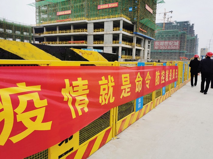 戴口罩、測體溫、問信息,這是走進(jìn)每個項(xiàng)目的標(biāo)配動作。進(jìn)入施工區(qū),戴著口罩的企業(yè)員工、醒目的宣傳防疫標(biāo)語、專用的口罩回收桶、集中居住管理的員工宿舍……時時刻刻提醒著你:這個非常時節(jié),疫情防控絲毫不能懈怠。