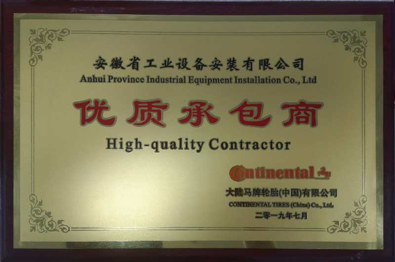 近日,大陸馬牌輪胎(中國)有限公司授予安徽安裝公司“優(yōu)質(zhì)承包商”獎牌和“36萬安全工時”獎杯。