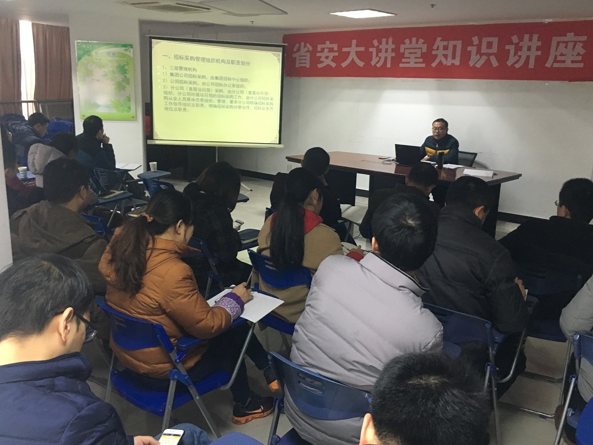 12月7日上午“省安大講堂”—招標業(yè)務培訓在職工之家開課。本次培訓由招標辦副經(jīng)理李文山授課,公司機關、分公司、項目部相關人員共30余人參加。