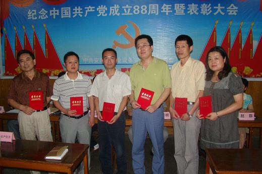 為迎接中國共產(chǎn)黨成立88周年,公司黨委于6月30日下午召開了“紀(jì)念中國共產(chǎn)黨成立88周年暨表彰大會”。合肥地區(qū)在崗黨員、非黨員中層干部、入黨積極分子,外地分公司經(jīng)理、書記以及受表彰的先進(jìn)個人參加了大會。大會由黨委書記戴樹明同志主持。