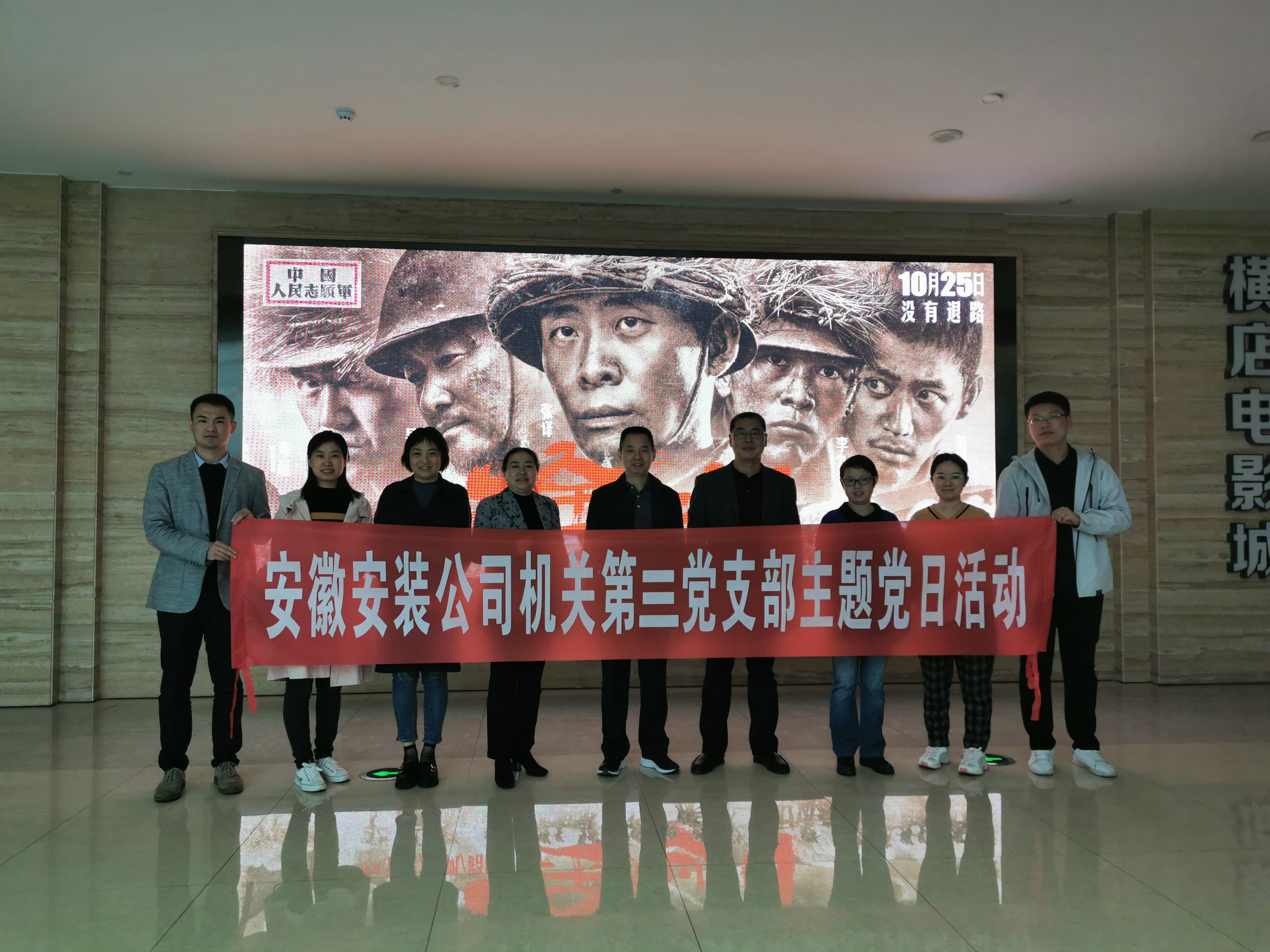 為紀(jì)念抗美援朝偉大戰(zhàn)爭,向中國人民志愿軍致敬,2020年10月26日,機(jī)關(guān)第三黨支部組織全體黨員觀看抗美援朝主題電影《金剛川》。公司黨委書記、董事長胡六中,副總經(jīng)理李原及總會計(jì)師張?jiān)笠云胀h員身份參加。