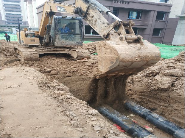 漢城源筑書香苑供暖工程項目部位于江蘇省徐州市沛縣漢城源筑項目書香苑小區(qū),施工范圍包括:書香苑熱力環(huán)網(wǎng)(一次環(huán)網(wǎng)、二次環(huán)網(wǎng))、熱交換站及自動化控制系統(tǒng)(含PLC全套自控系統(tǒng))、管道連接、所有與市政及單體樓棟對接檢修井等圖紙范圍內(nèi)全部內(nèi)容,以及與紅線外市政管網(wǎng)連接等;合同價1015.37萬元。2020年8月25日正式進場施工后,項目團隊嚴格按照合同施工節(jié)點抓生產(chǎn)、保任務(wù),尤其是10月-11月初,全體參建人員不畏艱難、逆勢而上,堅持白加黑、5+2的連續(xù)作戰(zhàn)模式,管理人員靠前指揮、作業(yè)人員并聯(lián)推進,只見挖掘機迅速掘進、土方車來回穿梭、焊接火花四處飛濺……到處一片大干快干的繁忙景象。截至11月10日,第一階段1、2號樓室外熱力管網(wǎng)敷設(shè)任務(wù)已基本完成,比合同規(guī)定節(jié)點提前20天,獲得了業(yè)主單位的肯定與贊許。