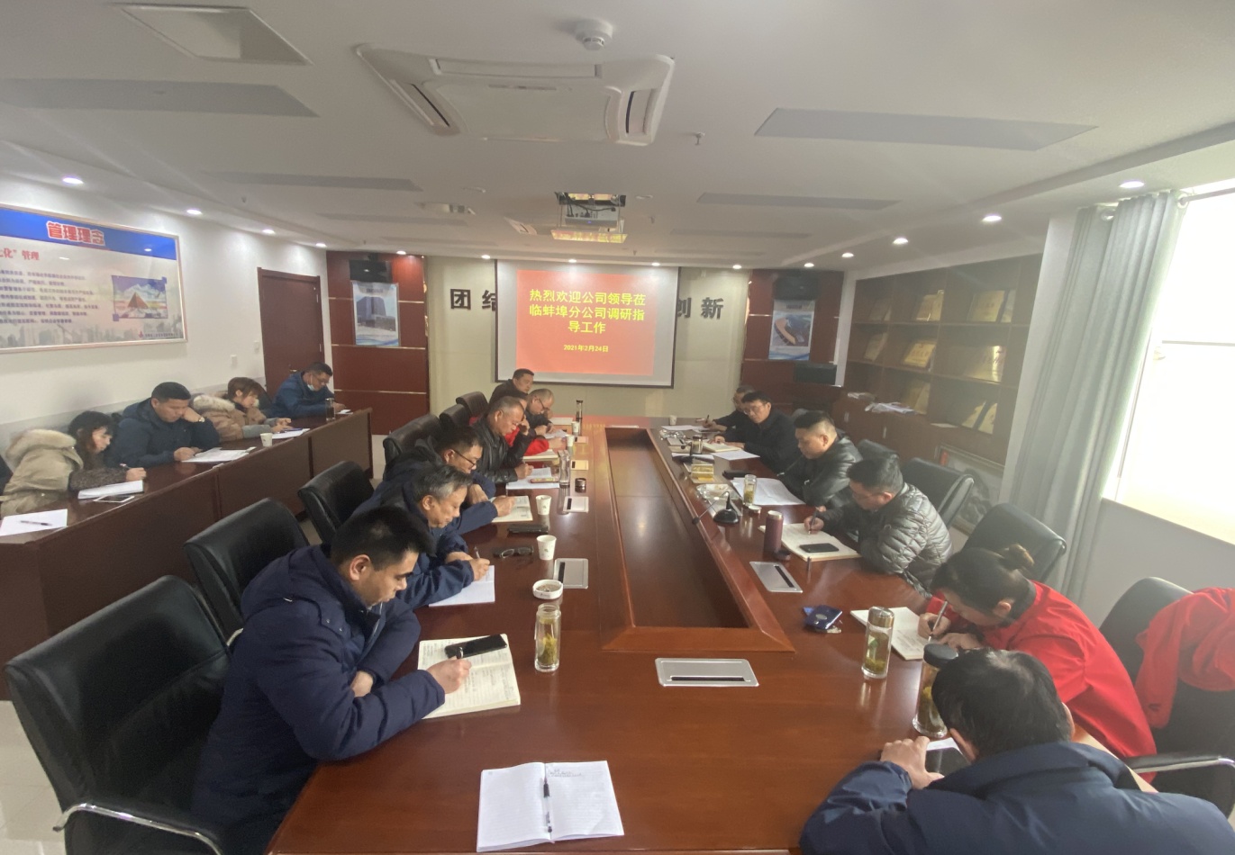 2月24日下午,公司副總經(jīng)理王軍深入蚌埠分公司調(diào)研指導(dǎo)工作。公司招標(biāo)辦公室經(jīng)理李紹林、物資管理部經(jīng)理卜英朝、分公司班子成員、部門負(fù)責(zé)人、項(xiàng)目經(jīng)理及相關(guān)部門人員參加會議。