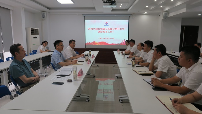 7月28日下午,公司黨委副書記、董事、副總經(jīng)理周正平,黨委委員、紀委書記、工會主席李楊,黨委委員、副總經(jīng)理趙伯平蒞臨合肥分公司調(diào)研指導工作,分公司領導班子成員、機關(guān)部門負責人,在肥項目經(jīng)理參加調(diào)研會。