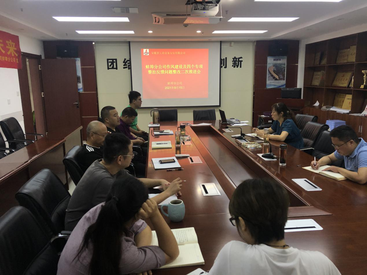 9月15日上午,蚌埠分公司黨支部召開“作風建設及四個專項整治反饋問題整改二次推進會”。分公司支委委員、班子成員、工管部、財務部、經(jīng)營部、綜合辦等相關部門負責人、具辦人員參加會議,會議由黨支部書記程茂麗主持。