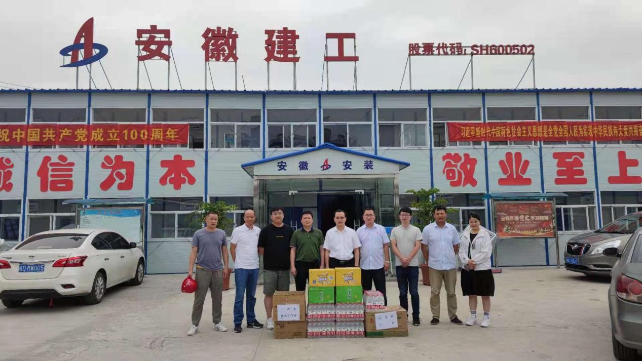 6月21日中午,室外溫度已超過35度,房建(裝飾)分公司黨支部書記王偉來到安徽壹石通化學(xué)科技廠房項目,實(shí)地看望和慰問了項目員工,為他們送去仁丹、藿香正氣口服液、十滴水、飲料、藥品等防暑降溫物品并與項目同志進(jìn)行了座談交流。