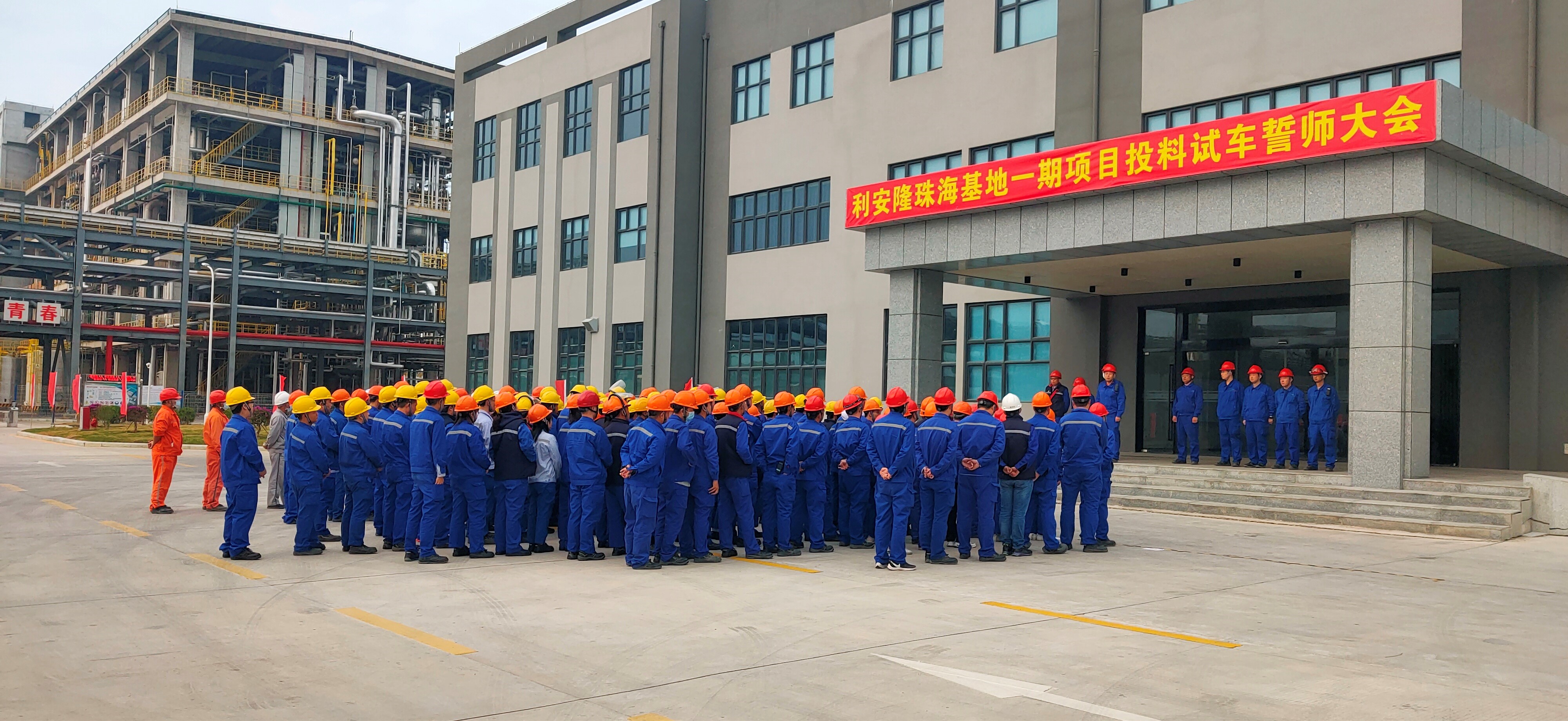 2022年1月10日公司參建的利安隆珠?;匾黄陧椖颗e行項目投料試車誓師大會。標(biāo)志著項目將全面進(jìn)入試生產(chǎn)階段。