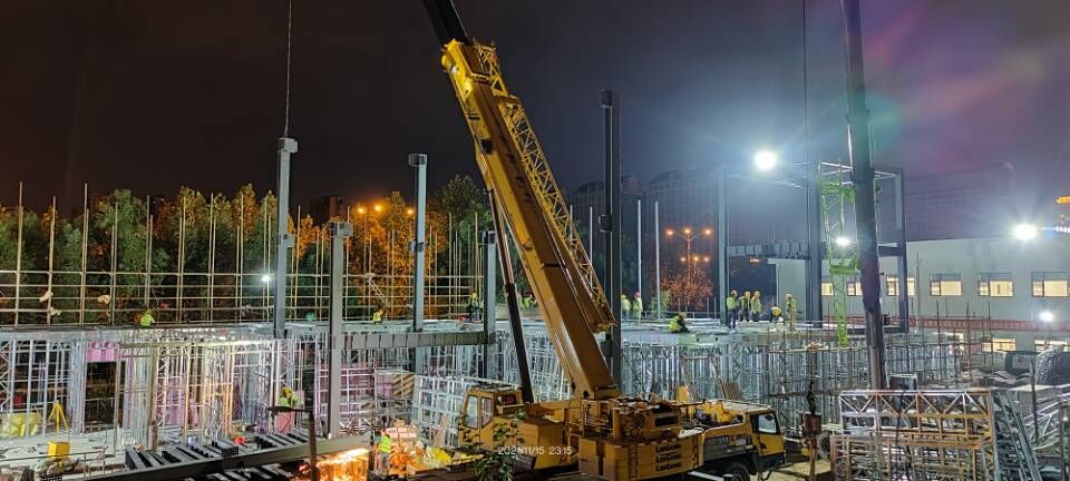 “開局即是決戰(zhàn),起步就要沖刺”,在項目現(xiàn)場,我們能感受到的是項目全體職工心往一處想、勁往一處使的勇氣與信心。截至11月16日,該項目已完成二層樓板壓型鋼板安裝,二層樓板混凝土澆筑完成50%,二層墻板繼續(xù)作業(yè),墻體內(nèi)水電預埋已經(jīng)穿插開始進行。一層墻板內(nèi)水電預埋基本完成,開始一層吊頂內(nèi)水電暖通安裝工作。
