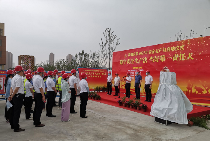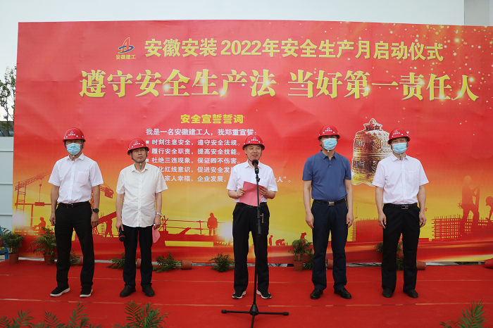 在全國第21個“安全生產(chǎn)月”活動到來之際,5月30日上午,安徽安裝公司2022年“安全生產(chǎn)月”啟動儀式在年配套1000萬臺新能源汽車及年產(chǎn)2億臺制冷空調(diào)壓縮機(jī)關(guān)鍵性能件制造基地項目舉行。公司黨委書記、董事長胡六中,紀(jì)委書記、工會主席李楊,副總經(jīng)理趙伯平,總工程師吳繼成及機(jī)關(guān)各部門、各分公司代表參加了本次活動。