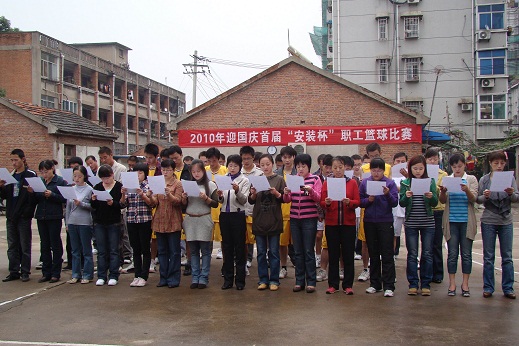 9月28日上午,寂靜已久的公司籃球場(chǎng)熱鬧非凡。由公司工會(huì)主辦的2010年迎國慶首屆“安裝杯”職工籃球比賽在此拉開帷幕。來自第壹分公司、蚌埠分公司、安慶分公司、公司機(jī)關(guān)的四個(gè)代表隊(duì)和機(jī)關(guān)員工參加了開幕式。