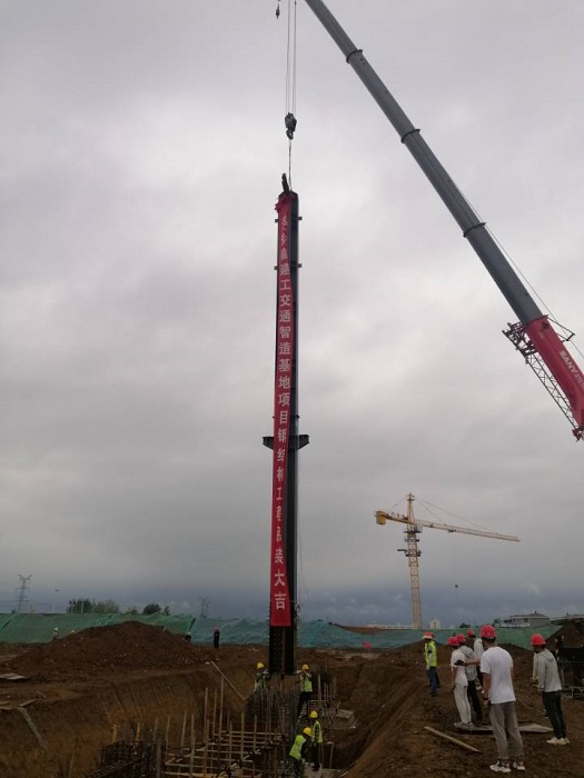 2022年7月26日上午8:18分,在項(xiàng)目建設(shè)單位、監(jiān)理單位、總包單位等領(lǐng)導(dǎo)的共同見證下,安徽建工交通智造基地項(xiàng)目鋼結(jié)構(gòu)工程迎來了隆重的鋼結(jié)構(gòu)首吊儀式。只見首根長約21.2米、重約11.6噸的鋼柱緩緩升起、穩(wěn)穩(wěn)落地,精準(zhǔn)定位在安裝位置上,這標(biāo)志著該項(xiàng)目正式進(jìn)入鋼結(jié)構(gòu)主體安裝階段。
