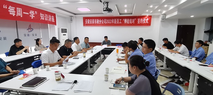 為促進新員工快速成長,加快公司人才隊伍建設(shè),8月17日,市政分公司舉行了2022年新員工“師徒結(jié)對”簽約儀式。分公司領(lǐng)導班子、全體員工參加儀式。