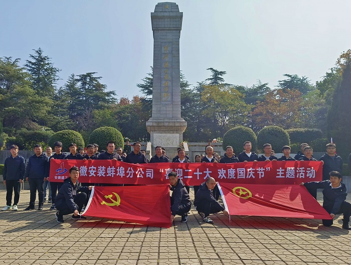 為熱烈慶祝中華人民共和國成立73周年,喜迎黨的二十大,弘揚愛國主義精神。9月29日上午,安徽安裝蚌埠分公司黨支部赴蚌埠市革命歷史紀念館組織開展愛國主義主題黨日活動,分公司全體黨員、青年團員及職工群眾參加此次活動。