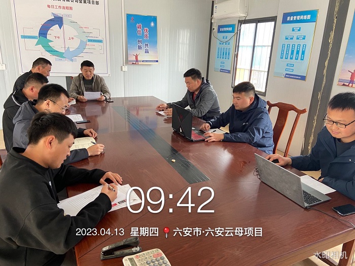 4月13日上午,蚌埠分公司“三個(gè)基地”項(xiàng)目負(fù)責(zé)人鄭衡赴“六安霍邱金巢云母”項(xiàng)目開展項(xiàng)目經(jīng)理學(xué)習(xí)交流交叉上課活動,項(xiàng)目全體管理人員參加此次學(xué)習(xí)交流活動。