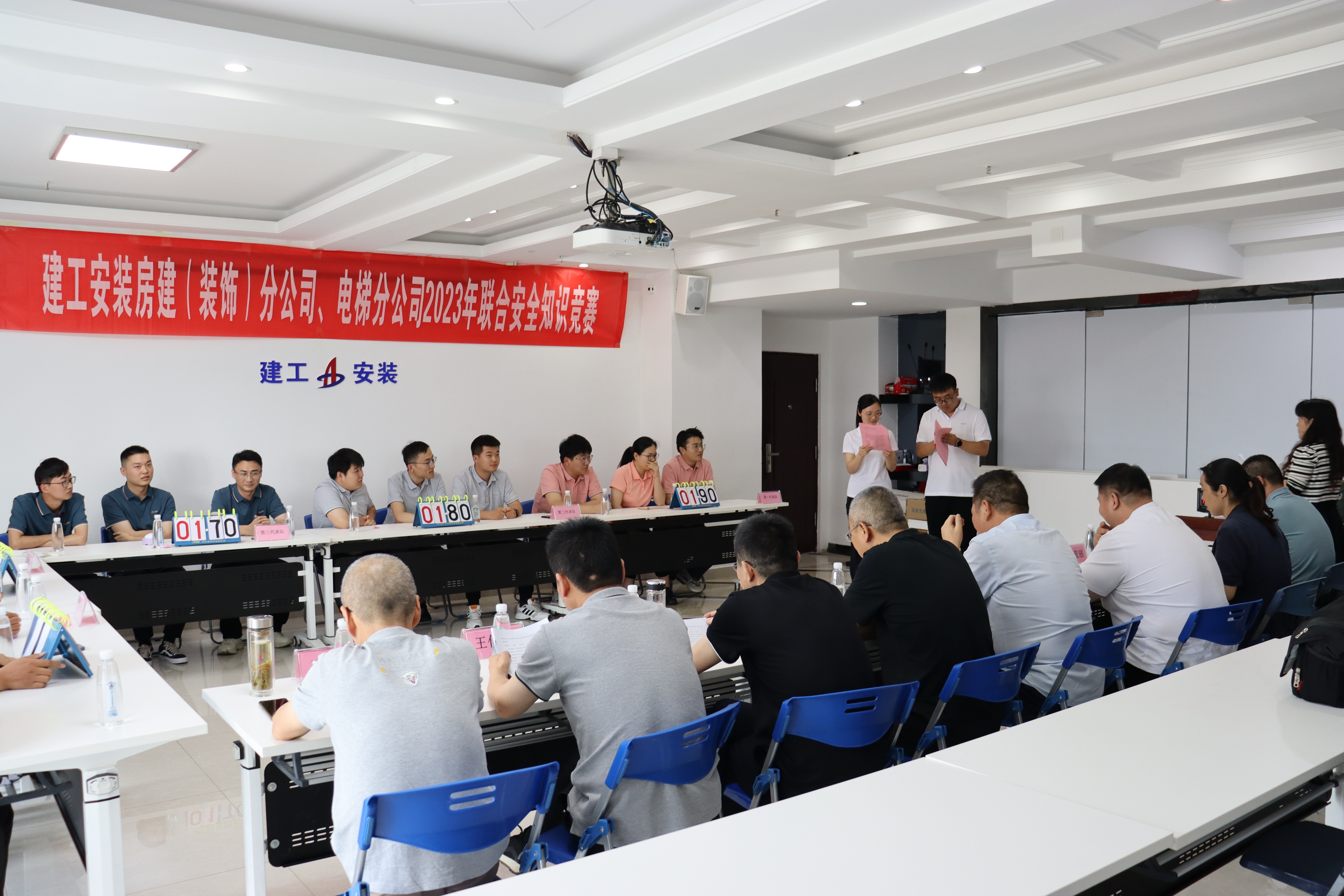 為深入貫徹黨的二十大精神和習(xí)近平總書(shū)記關(guān)于安全生產(chǎn)重要講話精神,近日,房建(裝飾)分公司、電梯分公司以“人人講安全、個(gè)個(gè)會(huì)應(yīng)急”為主題,聯(lián)合舉辦安全知識(shí)競(jìng)賽活動(dòng)。公司黨委委員、副總經(jīng)理董雙武,工程管理部(安全管理部)有關(guān)負(fù)責(zé)同志出席活動(dòng)。