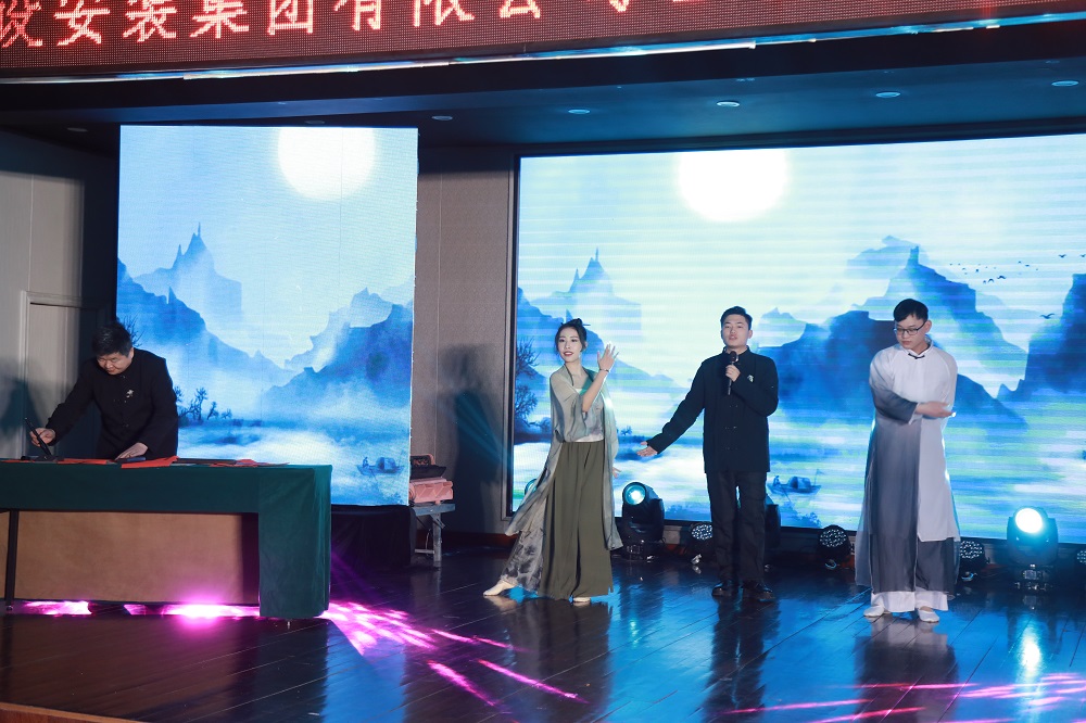 聯(lián)歡會一個個精彩的節(jié)目,博得大家的聲聲喝彩和陣陣掌聲,氣氛熱烈。在開場舞《龍騰盛世譜華章》中,聯(lián)歡會拉開序幕。新能源分公司《向光而行》展現(xiàn)了對未來發(fā)展的美好向往;安慶分公司《共創(chuàng)平安幸福年》以黃梅大鼓的形式講述安全工作的重要性;蚌埠分公司《水調(diào)歌頭》以獨唱、舞蹈及書法的形式送上祝福;公司機關的獨唱歌曲串燒《音樂學堂》帶領大家回憶童年耳熟能詳?shù)母枨?;新疆烏蘇分公司的小伙子們帶來的舞蹈《麥西來甫》呈現(xiàn)了維吾爾族的民族風情;滁州分公司的詩朗誦《建工逐夢人奉獻譜“新篇”》講述了建工安裝人的辛勤與奉獻;合肥分公司的《滁州賦》為觀眾帶來優(yōu)美的國風視覺享受;電梯分公司《舞動青春》散發(fā)著青春的活力與激情。最后,在共唱《相親相愛》中聯(lián)歡會落下帷幕。