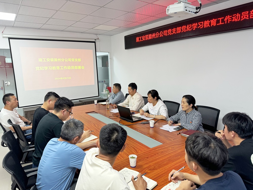 4月25日下午,建工安裝滁州分公司黨支部召開黨紀(jì)學(xué)習(xí)教育動員部署會。學(xué)習(xí)貫徹習(xí)近平總書記關(guān)于全面加強(qiáng)黨的紀(jì)律建設(shè)的重要論述,傳達(dá)學(xué)習(xí)黨中央關(guān)于黨紀(jì)學(xué)習(xí)教育的決策部署和集團(tuán)公司及公司黨委相關(guān)工作要求。分公司領(lǐng)導(dǎo)班子成員、全體黨員、部分機(jī)關(guān)部門負(fù)責(zé)人等參加會議。