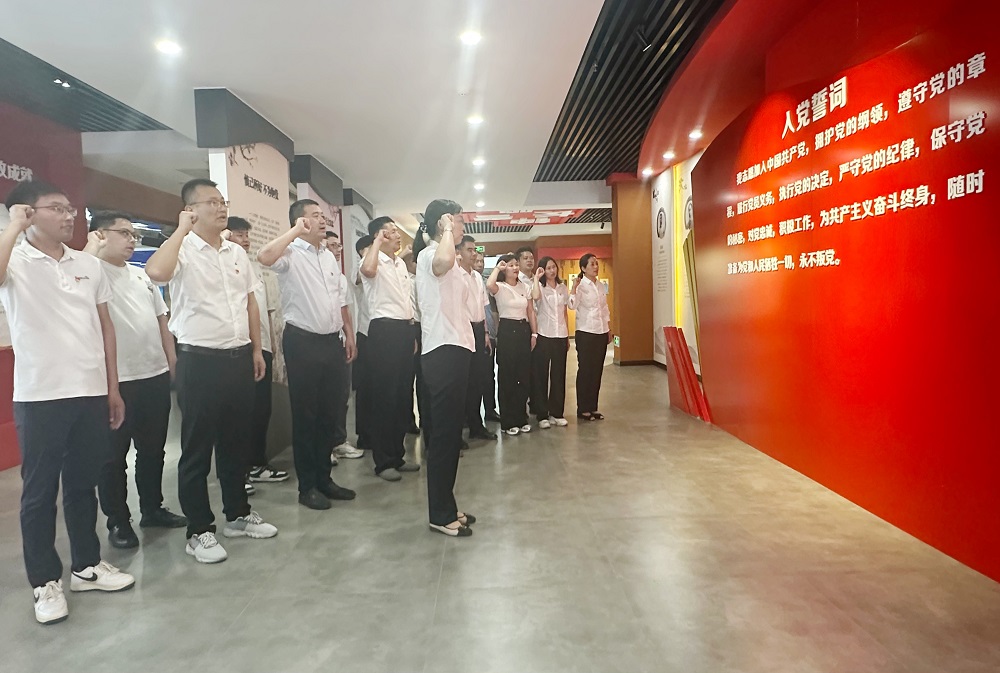 活動(dòng)期間,分公司黨支部書記、副經(jīng)理程茂麗帶領(lǐng)支部全體黨員集體重溫入黨誓詞。全體黨員面向黨旗舉起右拳,用錚錚誓言宣誓不忘初心使命為黨的事業(yè)奮斗的決心。