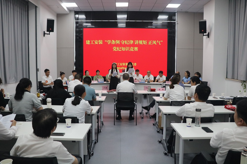 6月27日下午,建工安裝集團舉辦“學(xué)條例 守紀律 講規(guī)矩 正風(fēng)氣”黨紀知識競賽。公司黨委委員、紀委書記李楊,黨委委員、副總經(jīng)理董雙武,黨委委員、副總經(jīng)理樊剛出席活動,各黨支部書記、機關(guān)部門負責(zé)人以及參賽選手等40余人參加活動。