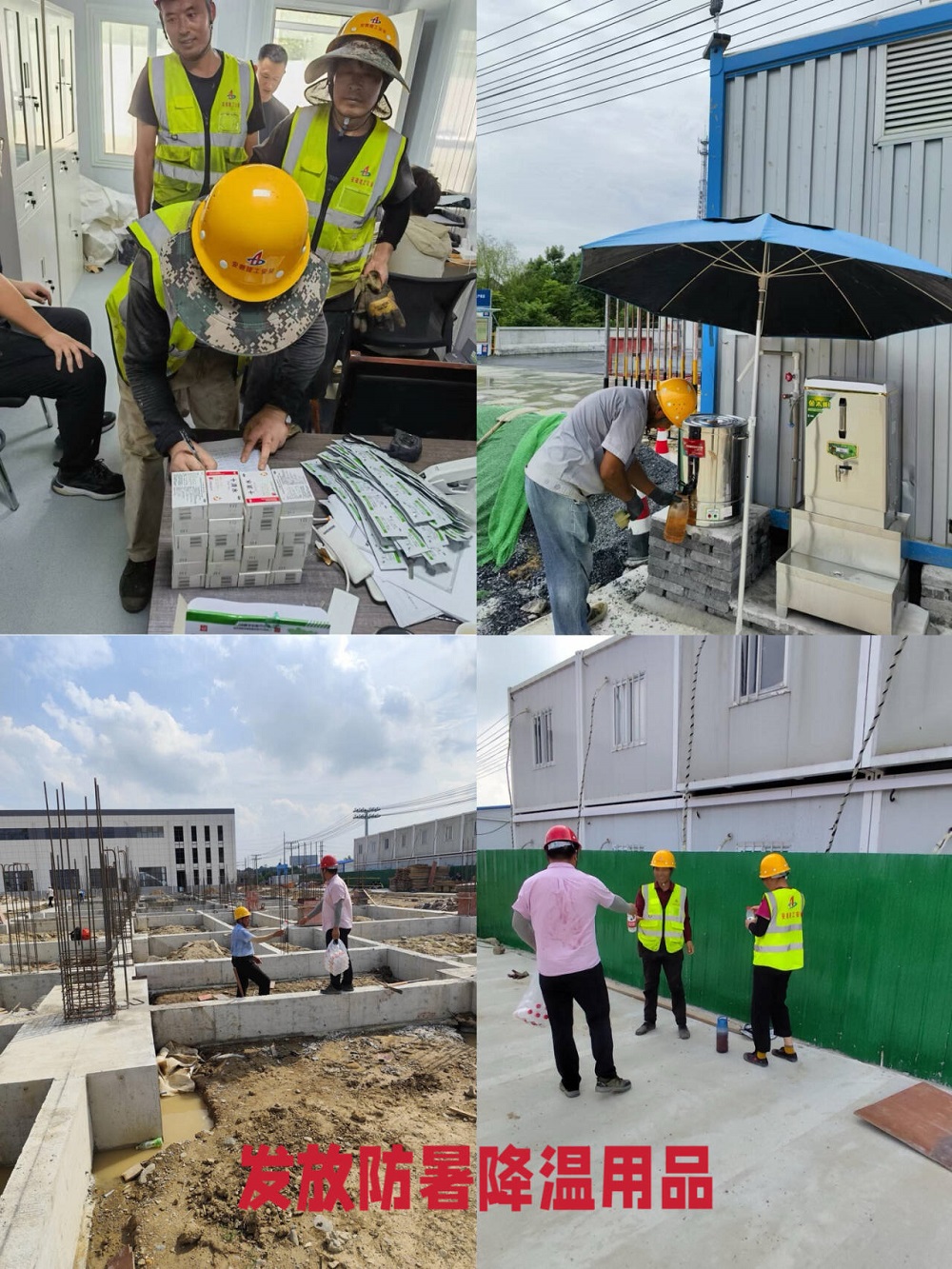 為應(yīng)對(duì)高溫天氣,項(xiàng)目部多措并舉,每日供應(yīng)冰水,加量供應(yīng)防暑降溫物資并合理調(diào)整作息時(shí)間,從而保障施工人員在高溫天氣作業(yè)安全,在這炎炎烈日下給工人師傅們送去一絲清涼。