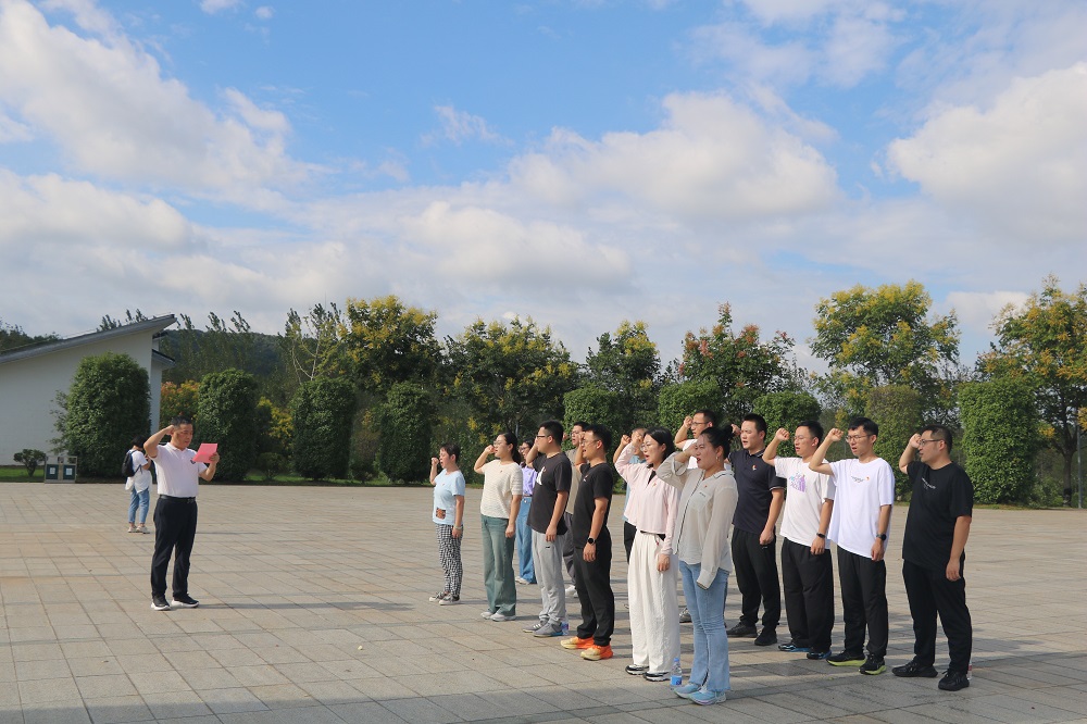 鏡園革命烈士紀念碑在陽光的照耀下莊嚴肅穆,黨員們懷著崇敬的心情,整齊列隊于紀念碑前,表達對先烈們的深切緬懷和無限哀思。在這片承載著歷史記憶的土地上,大家仿佛看到了革命先烈們?yōu)榱藝业莫毩?、民族的解放,不惜拋頭顱、灑熱血,用生命譜寫的壯麗篇章。全體黨員進行了集體宣誓,重溫入黨誓詞。