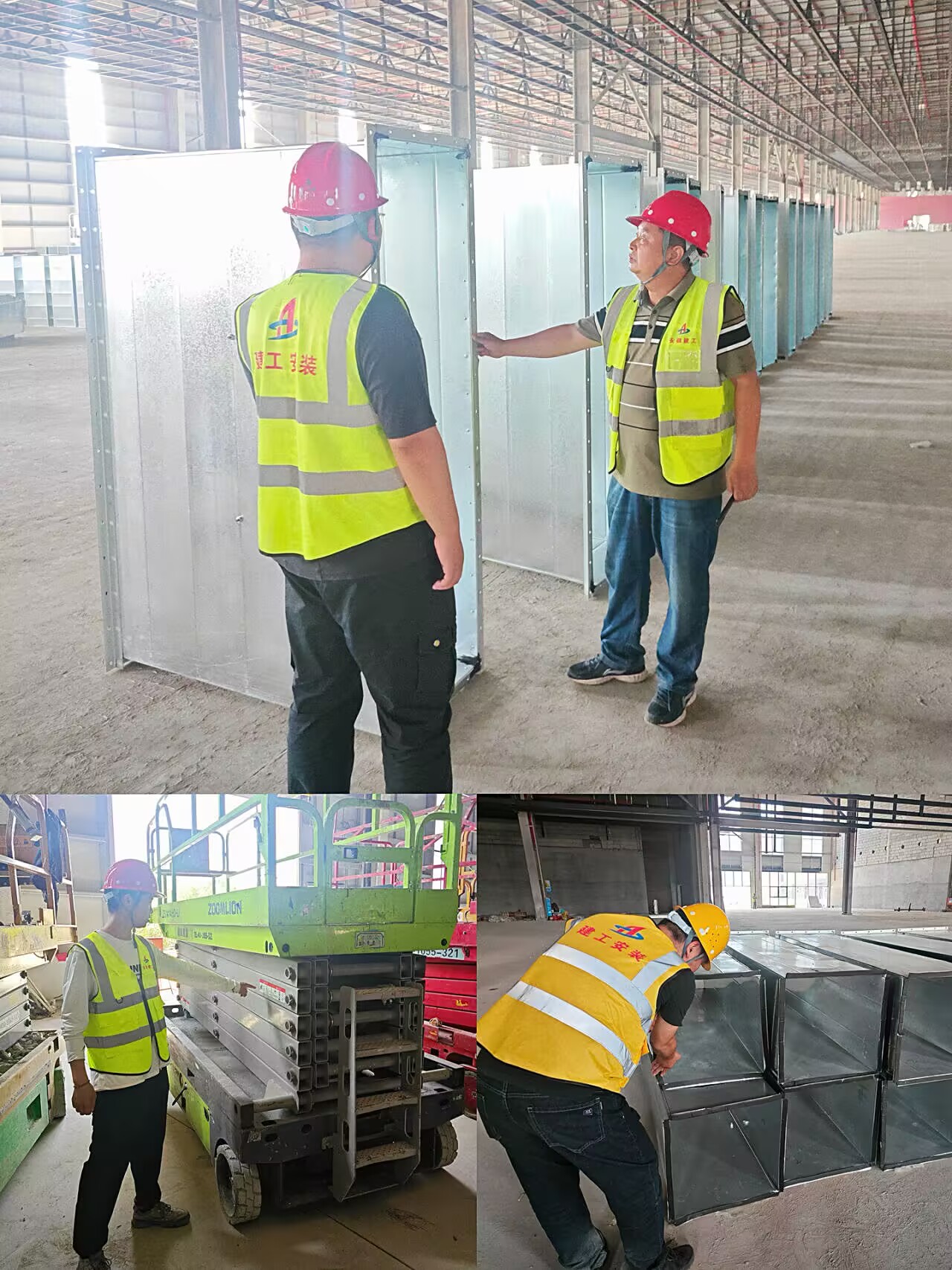 走進項目施工現(xiàn)場,銀灰色的鋼結(jié)構(gòu)廠房在陽光下熠熠生輝,長達百米的標準化車間整齊排列,工業(yè)美學與實用功能完美融合。現(xiàn)場管理人員正在監(jiān)督支吊架整改安裝、冷卻塔設備避雷針安裝交底等,其中污水處理站安裝調(diào)試已完成,下一步全體人員將以高效率和高標準推動項目順利通過竣工驗收。