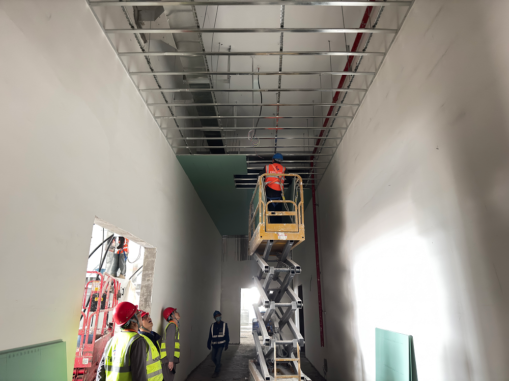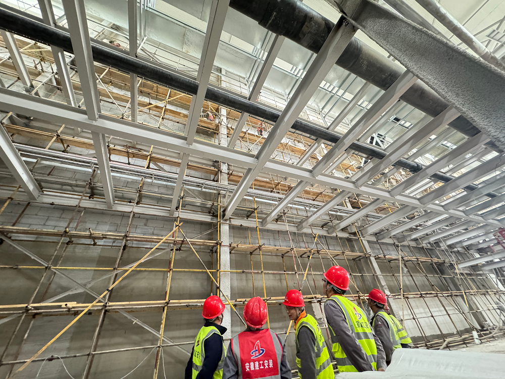 青海高原,氣候惡劣,環(huán)境艱苦,高寒缺氧,但這些困難并沒有阻擋項目部全體成員奮斗的步伐。施工現(xiàn)場,機器轟鳴聲此起彼伏,工人們頭戴安全帽,身系安全繩,操作著各種設(shè)備,熟練地進行著防水卷材敷設(shè)、吊頂板安裝、鋼筋綁扎、外墻抹灰、風(fēng)管安裝等作業(yè),每個環(huán)節(jié)都緊張有序,環(huán)環(huán)相扣。項目管理人員穿梭在各個施工點,緊盯現(xiàn)場安全與質(zhì)量,及時協(xié)調(diào)解決施工中遇到的問題,他們?nèi)硇牡赝度氲焦ぷ髦?,用專業(yè)的素養(yǎng)和嚴(yán)謹(jǐn)?shù)膽B(tài)度為項目建設(shè)保駕護航。